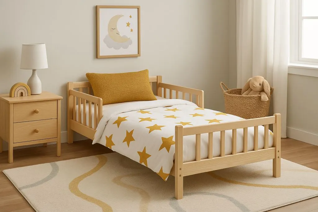 Ein Kinderbett sollte einfach zu reinigen sein. Waschbare Bezüge, robuste Oberflächen und gute Belüftung sorgen für Hygiene und verlängern die Lebensdauer. So bleibt der Schlafplatz lange schön und funktional.